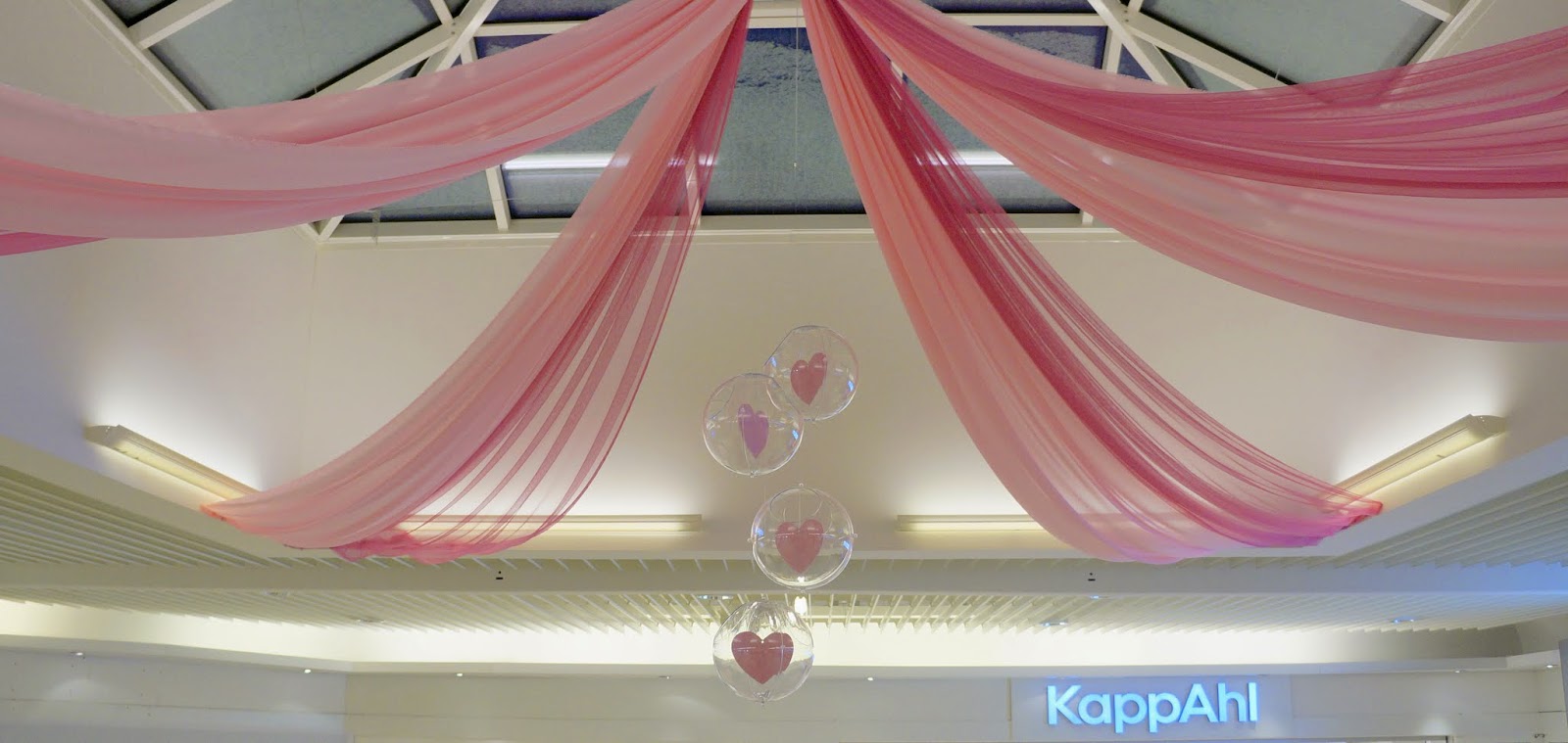 Igår var vi och satte upp alla hjärtans dag på Jägersro Center. Det har vilat ett par veckor från dekoration efter julen och nu var det dags att göra lite fint igen. Denna gången använde jag mig av tyger i 2 rosa nyanser ihop med hjärtan både i taket och på golvet. Det blev kanonfint och lite drömskt med tygerna. Det gör verkligen mycket för centrat att få upp lite dekoration och det uppskattas av både kunder och personal som jobbar där. Så driver du ett köpcenter och känner att det är dags att skapa lite nya upplevelser så tveka inte att höra av dig! Möjligheterna är många och bara fantasin sätter gränser. [emma.h]